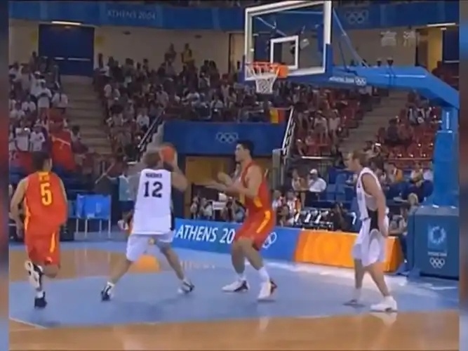 “2004年雅典奥运会中国队在小组赛里赢了新西兰,那苦战打到最后,赢了8分球还是10分球,一共得了70多分;大姚一人干了三十八,我记得一人反正是一半多,对自己得了1半多分,真不容易。那届大姚打完之后,他小组赛赢两场,赢新兰一场,赢塞尔维亚一场是吧?最打完这两场,赢完这两场出的线,输了阿根廷,输了西班牙,输了意大利,是吧?两胜三负。”